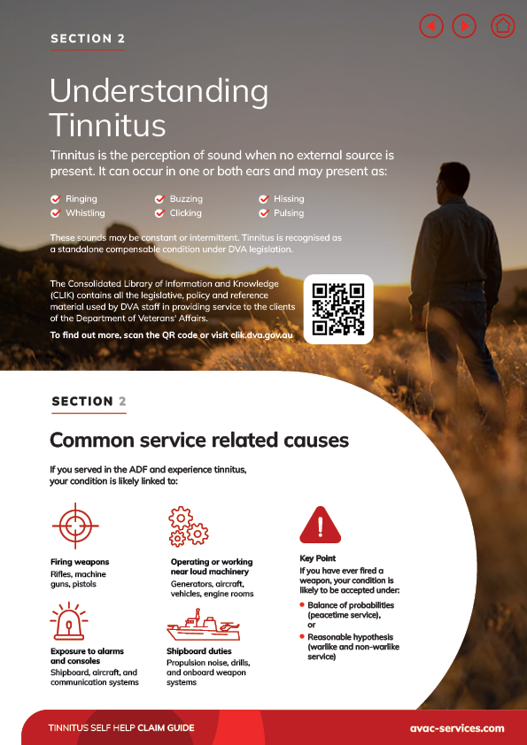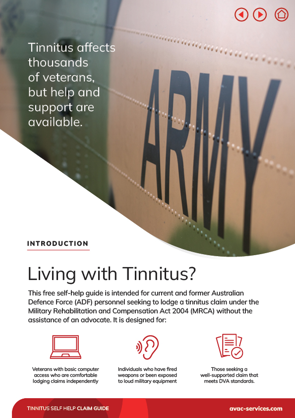This free self-help guide is intended for current and former Australian Defence Force (ADF) personnel seeking to lodge a tinnitus claim under the Military Rehabilitation and Compensation Act 2004 (MRCA) without the assistance of an advocate. It is designed for: